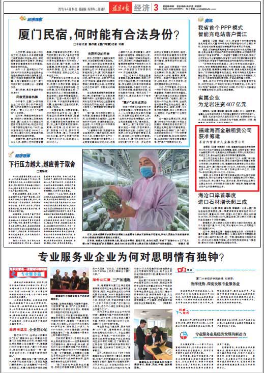 據(jù)悉,該公司將是第三家總部落地泉州的全國性非銀金融機(jī)構(gòu),同時也打破省內(nèi)尚無法人金融租賃公司的局面。公司成立后,將以海洋產(chǎn)業(yè)、醫(yī)療設(shè)備、服務(wù)僑臺企業(yè)等為主要業(yè)務(wù)方向,并依托股東優(yōu)勢發(fā)展廠商租賃、智慧城市建設(shè)與產(chǎn)業(yè)升級等特色業(yè)務(wù)。