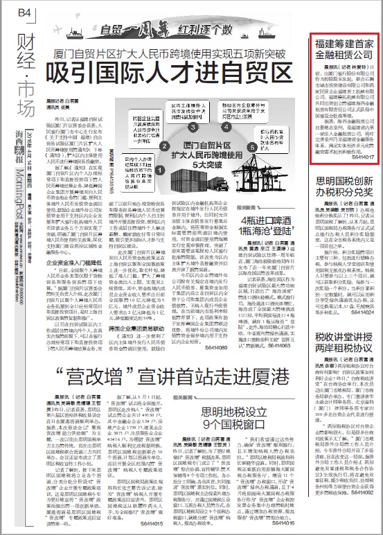 據(jù)悉,海西金融租賃公司注冊地在泉州,是福建省內(nèi)第一家法人金融租賃公司,將對完善泉州乃至福建省金融服務(wù)體系、滿足實體經(jīng)濟(jì)多元化的融資需求起到積極作用。