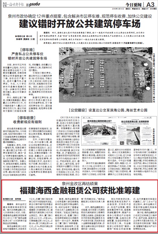 海都訊(N海都記者 吳秀娜) 泉州金改區(qū)建設(shè)再度取得實(shí)質(zhì)性突破。繼興業(yè)消費(fèi)金融公司、七匹狼財(cái)務(wù)公司后,日前,福建海西金融租賃有限責(zé)任公司(以下稱“海西金融租賃公司”)正式獲得中國銀監(jiān)會(huì)批準(zhǔn)籌建。