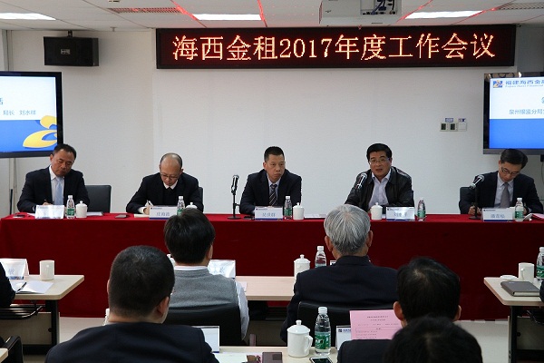 1月22日下午,公司召開2017年度工作會議,泉州銀監(jiān)分局黨委書記、局長劉水祥,監(jiān)管二科科長潘清敏,監(jiān)管員吳婧,廈門銀行黨委書記、董事長吳世群,行長洪主民,黨委副書記、監(jiān)事長張永歡,以及海西金租公司莊海波董事長、高管及全體員工參加會議。會議由潘青松黨委書記主持。