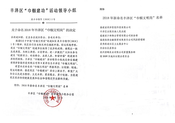 公司黨委以爭創(chuàng)巾幗文明崗為載體,提升培養(yǎng)女職工愛崗敬業(yè)工作水平,使公司婦建工作呈現(xiàn)出昂揚向上、蓬勃發(fā)展的新局面。今年7月,公司風(fēng)險管理部獲評泉州市豐澤區(qū)“巾幗文明崗”,展示了新時期女性自強自信的時代風(fēng)采。