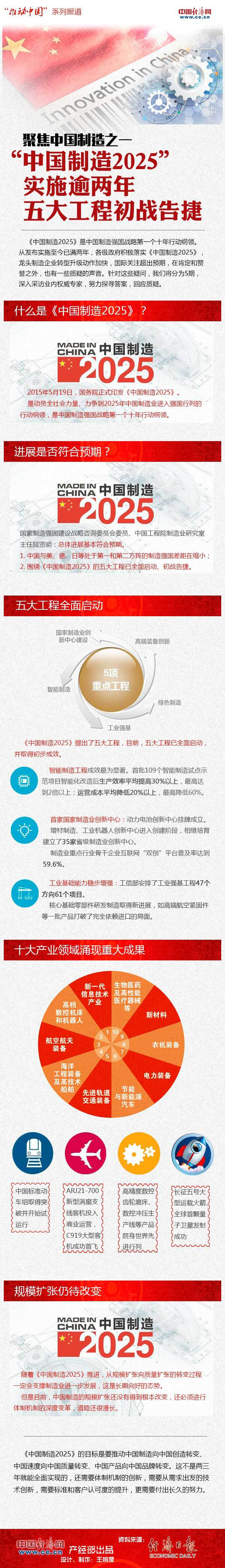 《中國制造2025》是中國制造強國戰(zhàn)略第一個十年行動綱領(lǐng),從發(fā)布實施至今已滿兩年,各級政府積極落實《中國制造2025》,龍頭制造企業(yè)轉(zhuǎn)型升級動作加快,收獲了許多成果。國際關(guān)注超出預(yù)期,在肯定和贊譽之外,也有一些質(zhì)疑的聲音。
